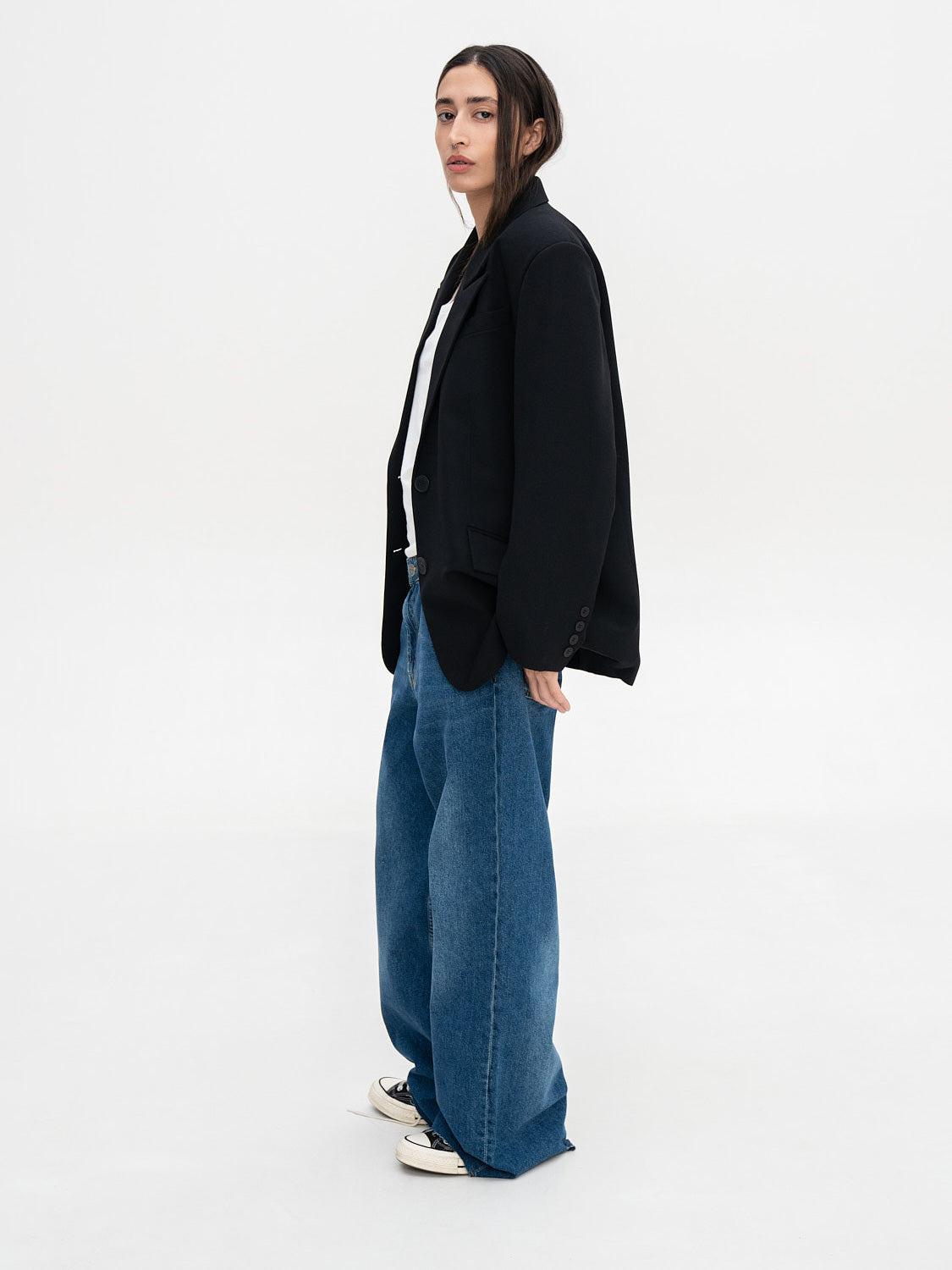 Класичний жакет з 100% вовни, який поєднує тепло та стиль. Виготовлений з натурального матеріалу з акуратним кроєм для елегантного вигляду.