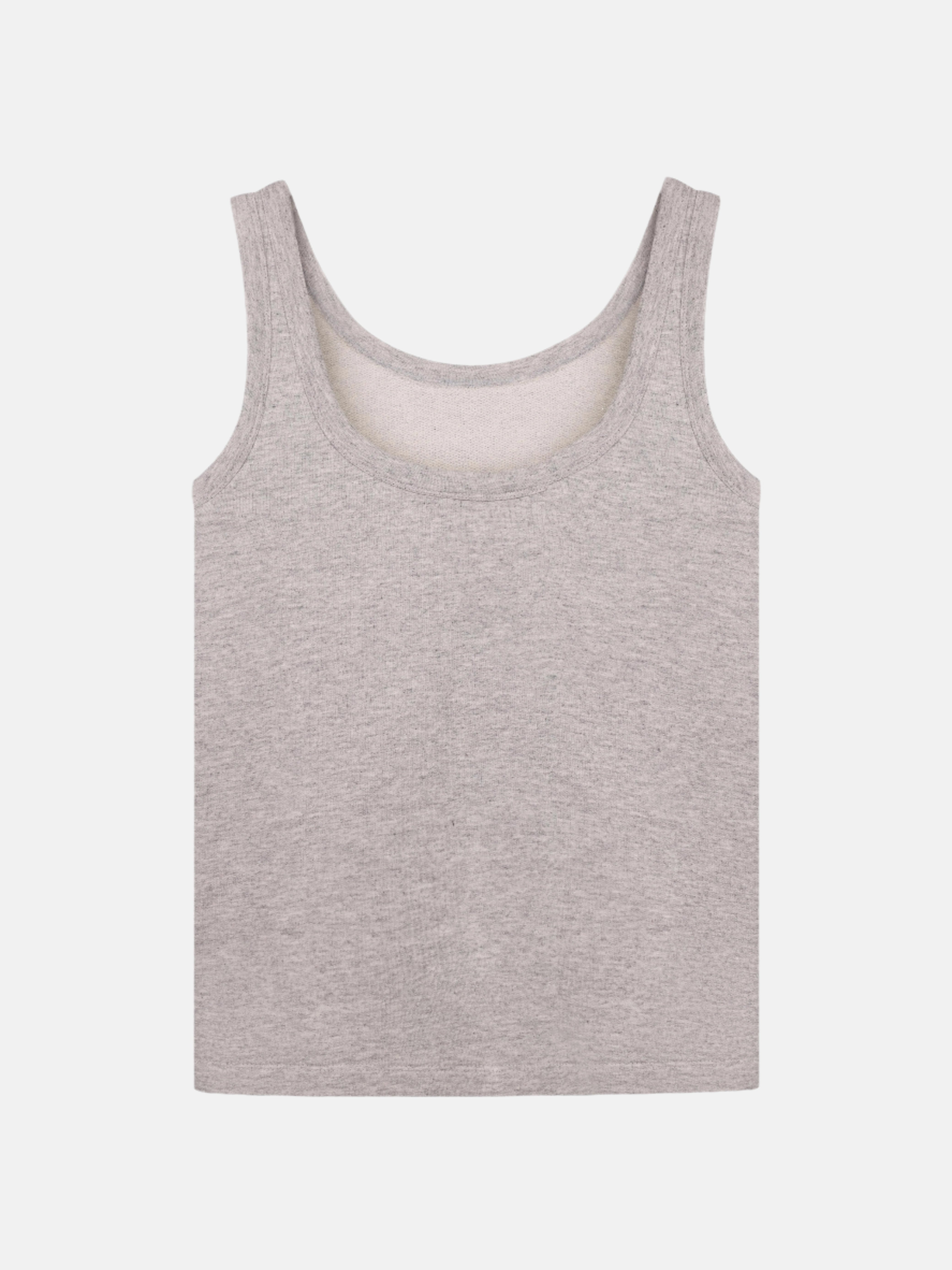 Майка з сірого меланжевого трикотажу з лаконічним прямим силуетом. М’яка еластична тканина забезпечує комфорт у щоденному носінні та добре підходить для багатошарових образів.