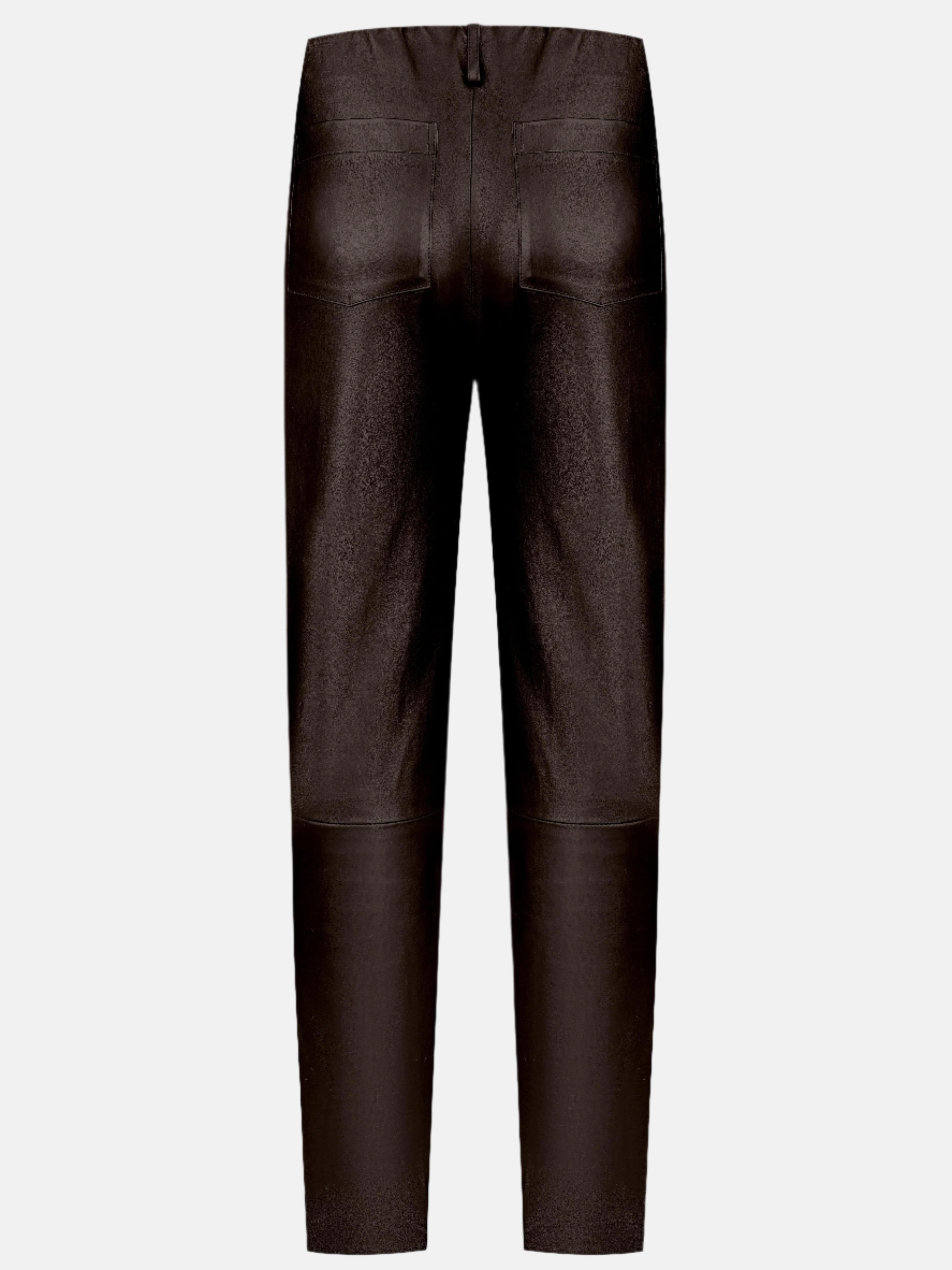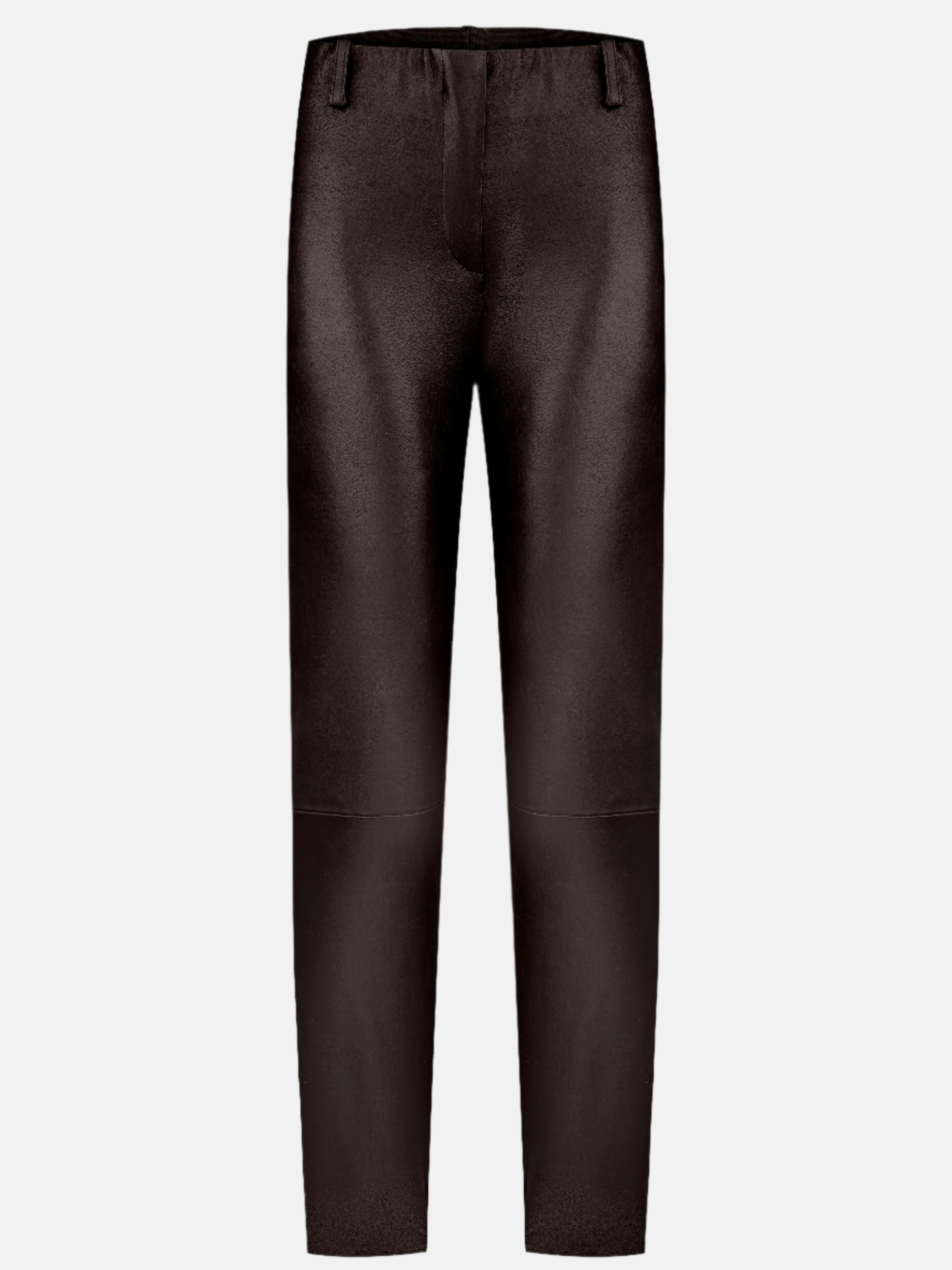 Коричневі штани з 100% натуральної шкіри — лаконічний фасон і виразна фактура. Стильний акцент у гардеробі для повсякденних і вечірніх образів.