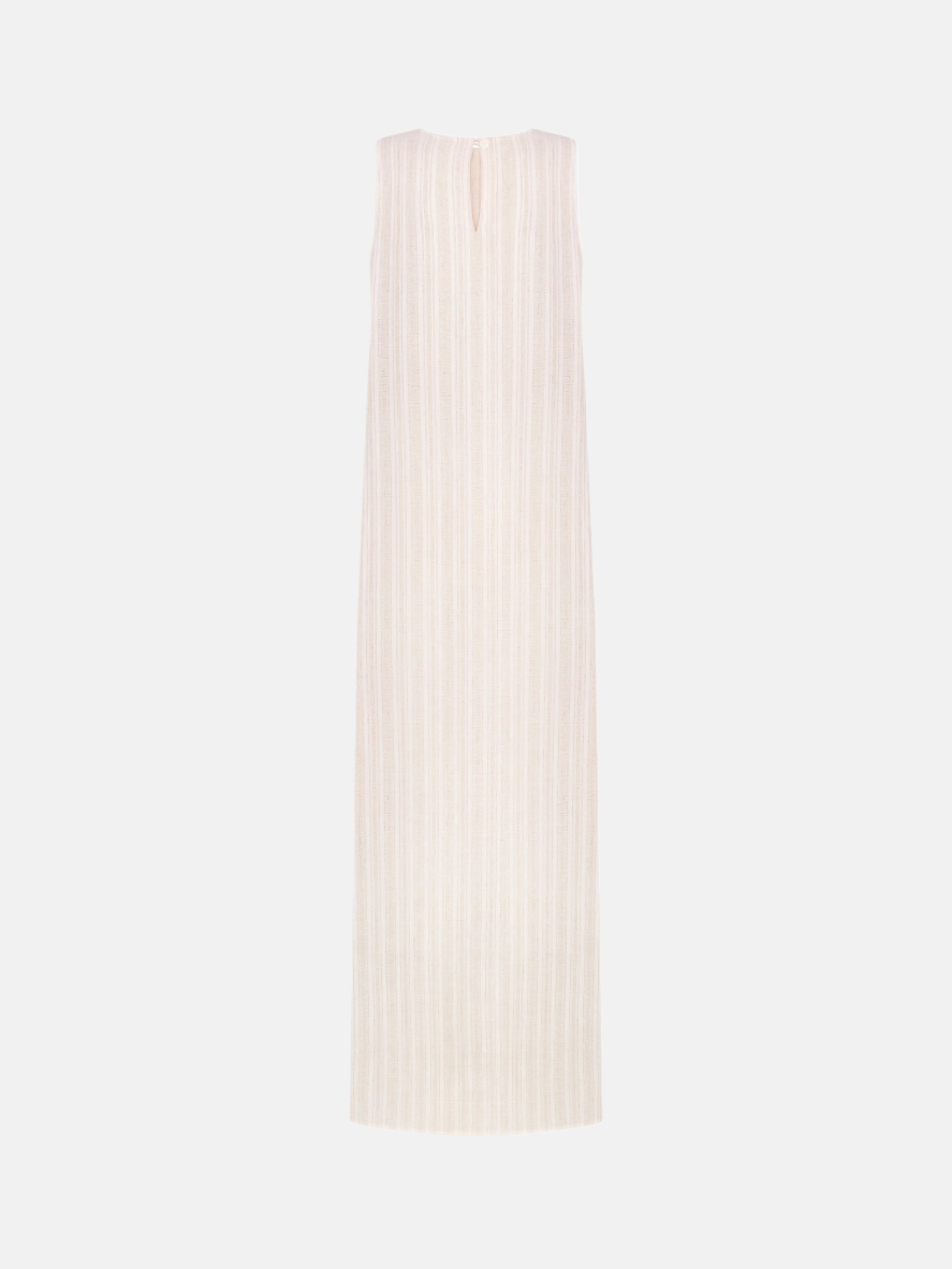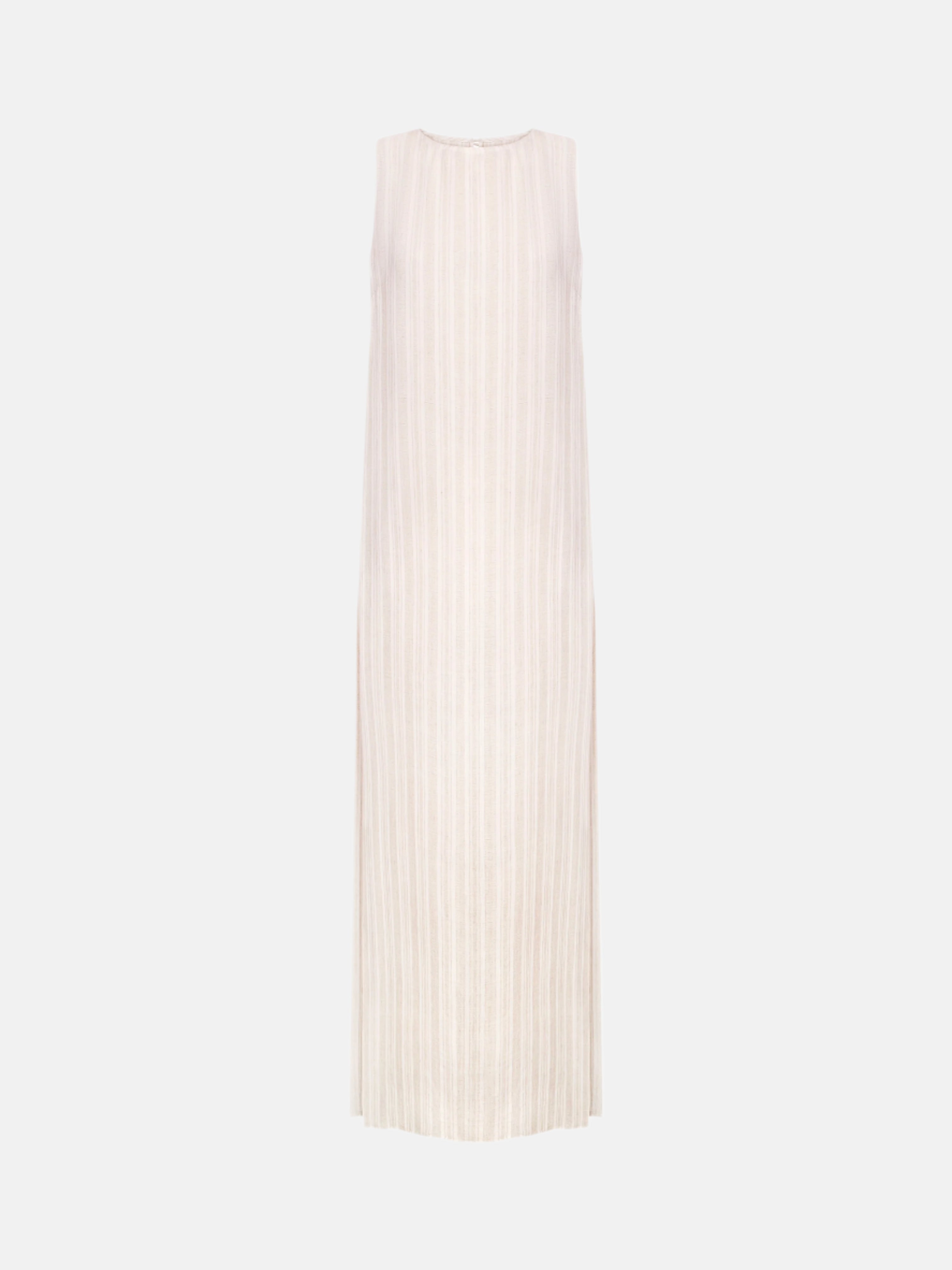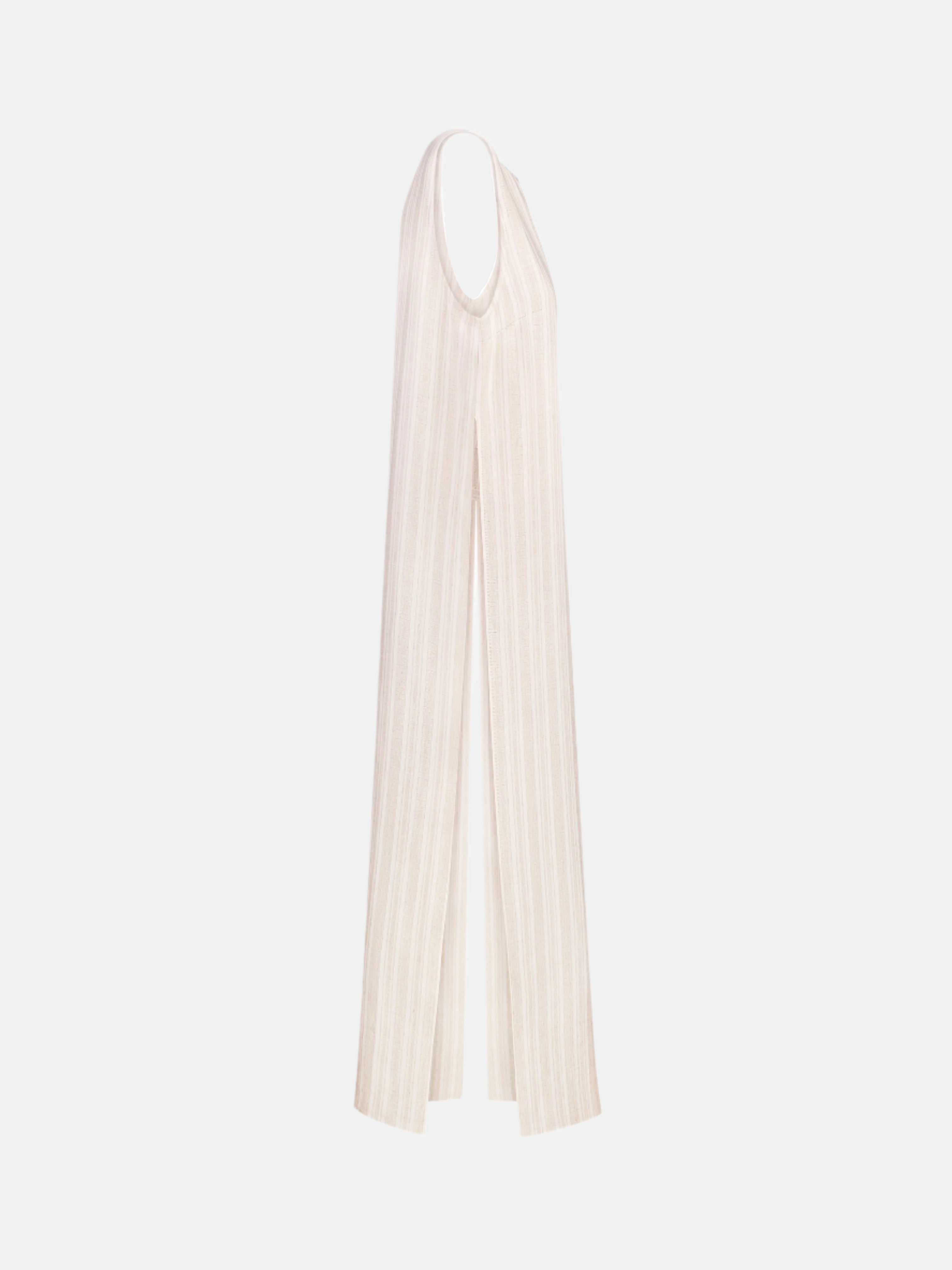 Бежева туніка у смужку з боковими розрізами, створена з легкої сумішевої тканини. М’яка й дихаюча, підходить для щоденних літніх і міських образів.